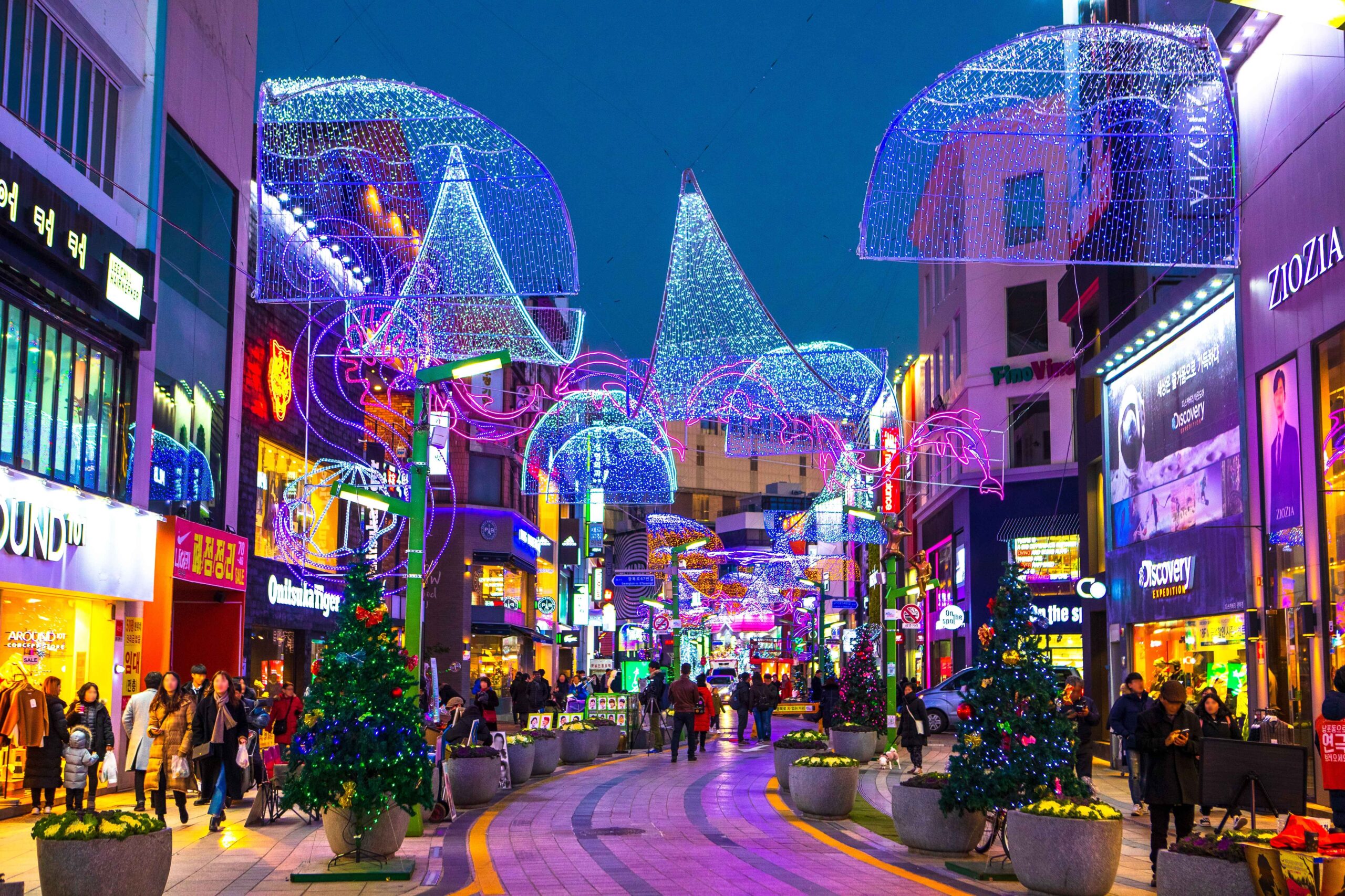 Takie miejsca jak Shinsegae, Lotte, Hyundai Seoul oraz Hyundai Apgujeong to największe centra handlowe, które na święta przygotowują ogromne, często multimedialne pokazy świąteczne. Na przykład Shinsegae przyciąga co wieczór tysiące gości widowiskowym show świateł na fasadzie, a Lotte prezentuje animowane filmy świąteczne na swoich elewacjach. Hyundai Seoul i Apgujeong zachwycają klimatycznymi wioskami świątecznymi z drewnianymi domkami, animowanymi misiami oraz licznymi strefami do rodzinnych zdjęć.